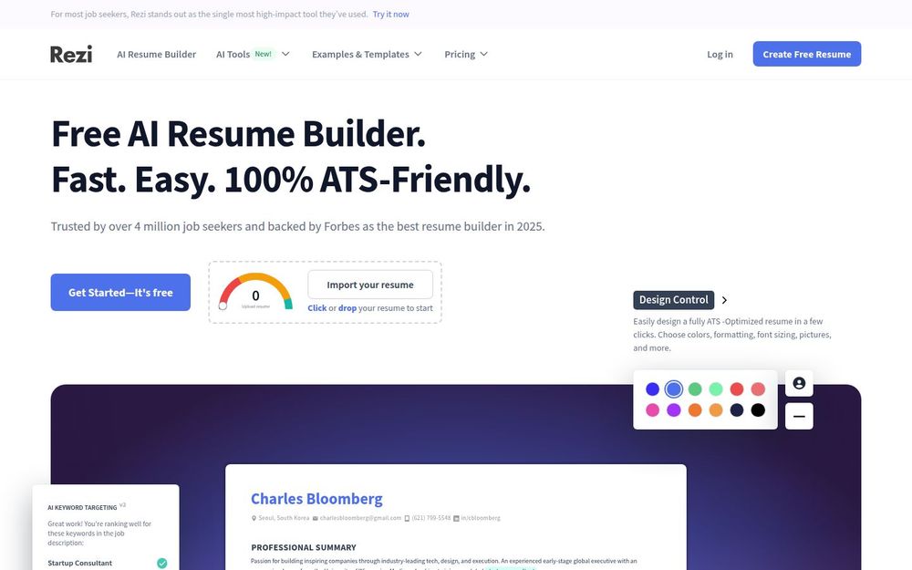 如果你希望简历不仅“看起来专业”,更能被招聘系统正确读取与推荐,Rezi 的关键词匹配与实时评分能直接提升通过率。平台强调数据驱动的优化,比单纯模板堆砌更能带来面试机会。