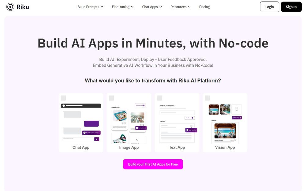 Riku 是一个无代码的生成式 AI 平台,旨在让企业和个人在几分钟内构建、实验与部署智能应用。通过简洁的可视化构建器,用户可以把自有数据、安全地接入到 AI 工作流里,快速创建聊天机器人、文本生成器、图像生成器与视觉分析应用。平台强调无代码、快速迭代与多模型试验,并对接 40+ 的行业级 LLM 以满足不同精度、成本与隐私需求。