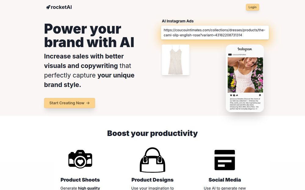 rocketAI 是一个专为电商品牌设计的 AI 营销与视觉创作工具,目标是用自动化和模型定制来提升产品展示和广告效果。通过抓取电商产品页面数据并训练专属 AI 代理,rocketAI 能生成适配品牌风格的图片、广告文案与产品描述,帮助中小电商与品牌快速扩展视觉与投放素材库。