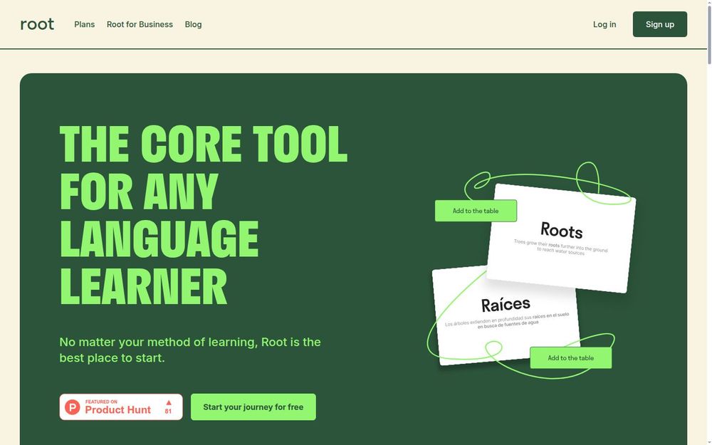 Root 适合希望把词汇学习系统化的人群——无论是初学者还是中高级学习者,都能受益于其AI 辅助的内容生成、基于证据的复习算法与丰富的练习形式。免费层提供入门体验并包含 AI 代币以便试用,更高等级订阅解锁无限卡组与更多代币,企业版则支持团队管理与业务需求。总体来看,Root 将技术与教学设计结合,既照顾学习效率也注重学习体验,是想要长期积累词汇量用户的实用工具。