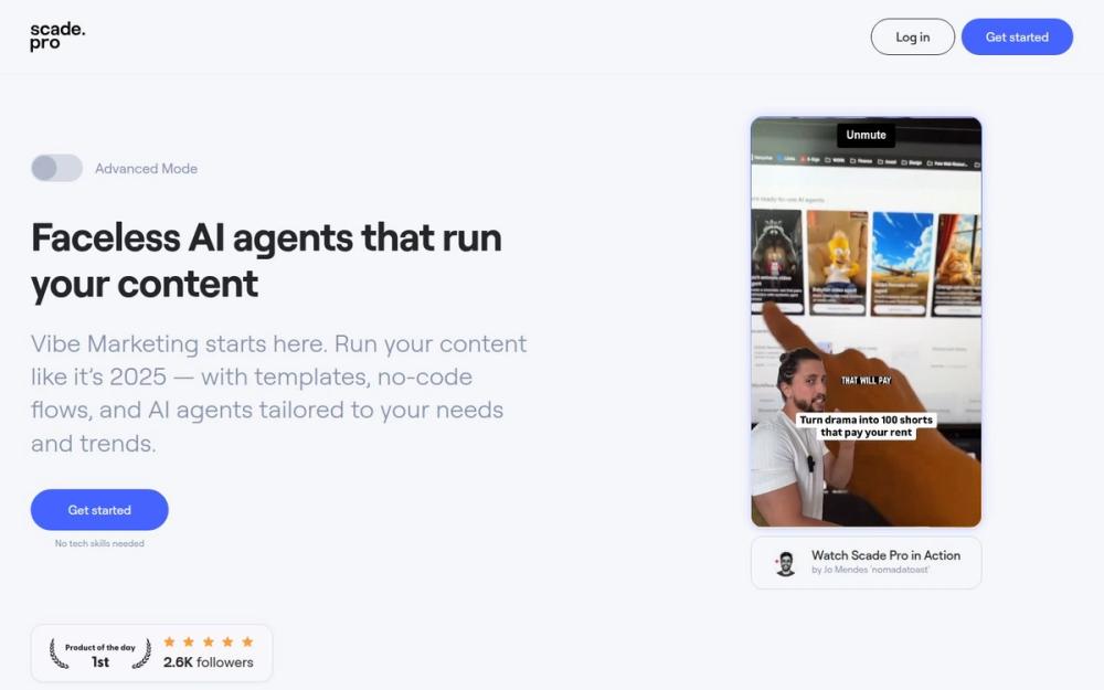 Scade 是一款面向创作者、产品经理与开发团队的 AI 平台,旨在通过可视化的无代码流程、模板与可定制的 AI 代理,让用户在无需拍摄或搭建基础设施的情况下,快速生成与部署多模态内容。平台强调“Faceless AI agents”,即自动化生成适合社交平台的短视频、图像与文案,并支持将这些功能通过统一 API 或内置发布功能直接嵌入产品或发布为独立 Web 应用。