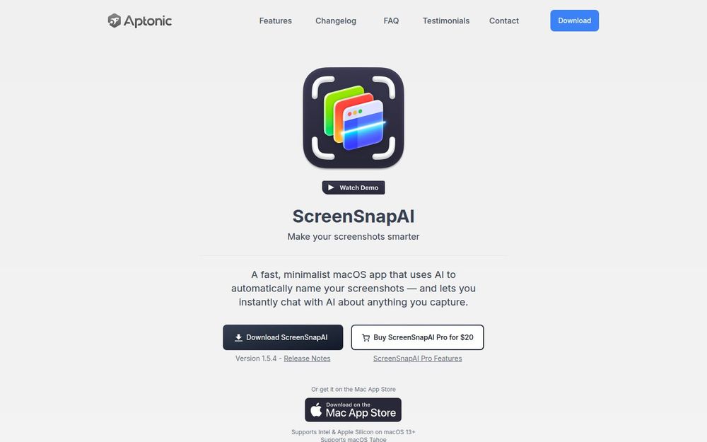 ScreenSnapAI 是一款专为 macOS 设计的智能截图重命名与组织工具,同时集成即时 AI 聊天助手,旨在让截图不再只是图片而成为可搜索、可交互的信息单元。应用追求极简界面与本地化体验,支持 Intel 与 Apple Silicon,并兼容 macOS 13 及以上(包括 Tahoe)。无论是日常记录、设计工作还是快速问题求解,ScreenSnapAI 都能把截图转化为可理解、可检索的资料。