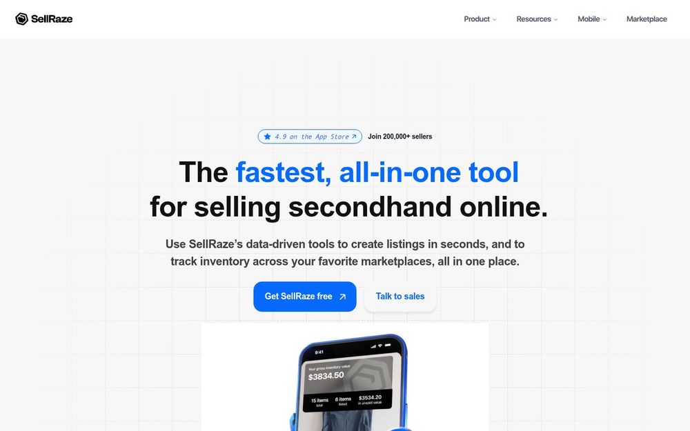 SellRaze 是一款为二手商品卖家设计的一体化卖货管理平台,通过数据驱动和 AI 帮助用户在多平台上快速创建、发布与管理商品列表。它聚焦于提升上架效率、简化买家沟通与发货流程,并提供库存估值与监控功能,适合个人卖家、翻新商与小型电商团队使用。