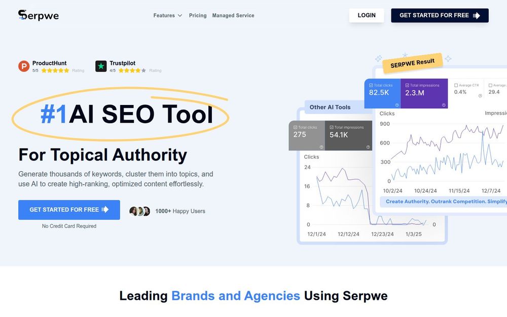 Serpwe 是一款专注于构建“主题权威”的 AI SEO 工具,目标是用自动化和语义理解简化关键词研究与内容创作流程。它结合实时的搜索引擎结果(SERP)数据与先进的 NLP/聚类算法,帮助用户从少量种子关键词扩展出成千上万个相关搜索词,再把这些关键词组织成清晰的主题集群,最终通过 AI 辅助生成可上线的 SEO 内容。