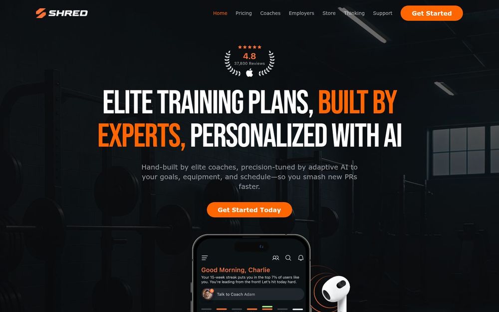 SHRED 是一款将精英教练设计与自适应 AI 引擎相结合的训练平台。它通过快速评估你的动作能力、训练目标与可用器材,在几分钟内生成个性化的训练计划,并在你训练过程中持续调整强度与节奏,确保你始终沿着可测量的路径进步。