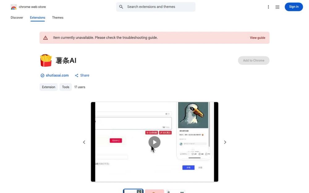开发者在扩展详情页明确表示不会收集或使用用户数据,也不会将数据出售给第三方。扩展提供一个官网链接(https://shutiaoai.com)与开发者邮箱用于支持与反馈;当前商店页显示作者为网站所有者且无违规记录。