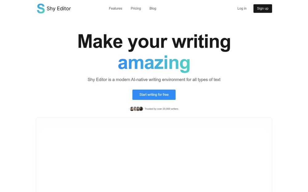 Shy Editor 是一款为现代写作者打造的 AI 原生写作环境,适用于小说家、非虚构作者、学生、学者、博客作者、记者及其他内容创作者。它将传统文本编辑与智能辅助深度结合,目标是让创作更专注、更高效,同时保留作者的独特声音与创作控制权。