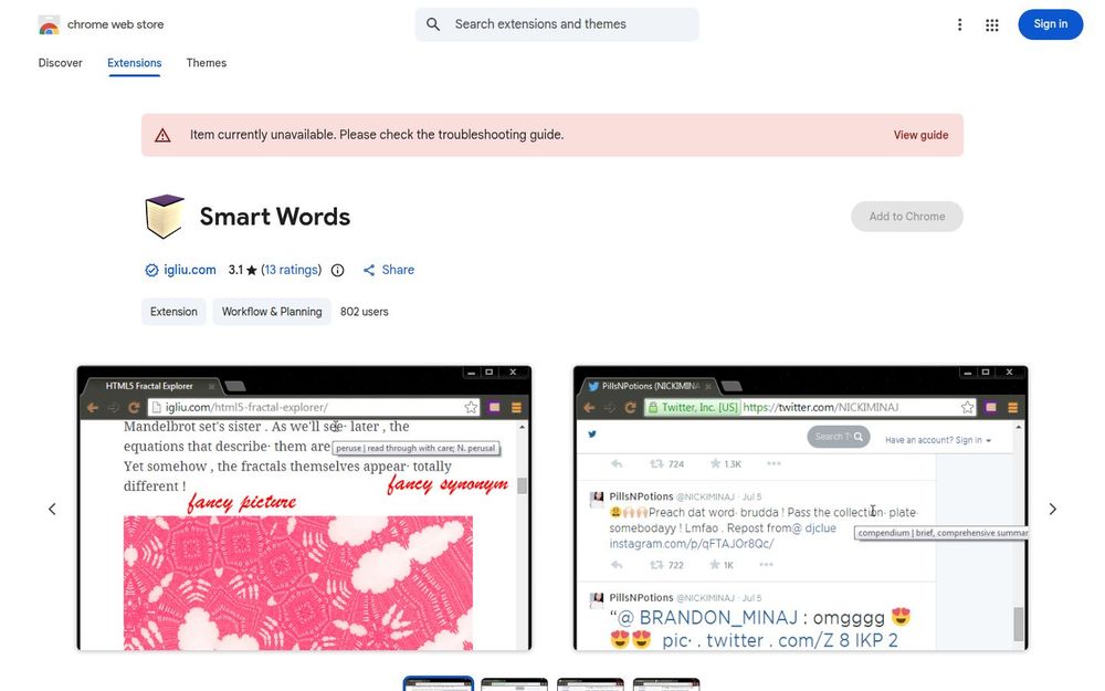 Smart Words 适合希望在日常网络阅读中无痛积累学术词汇的用户,尤其是 SAT/GRE 考生、写作爱好者或想提升书面表达的学习者。它通过被动学习的方式把碎片化的浏览时间转换为词汇学习机会。若你重视隐私或需要稳定长期维护的扩展,请注意当前条目的可用性与隐私说明,权衡后再决定是否安装。