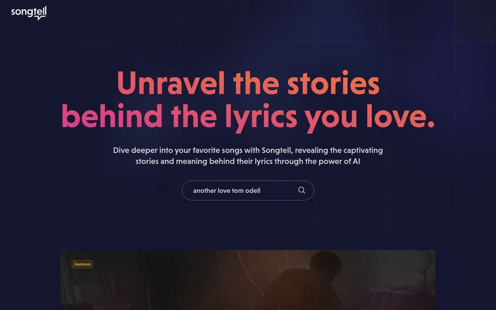 Songtell 是一个通过 人工智能(AI) 将歌曲歌词的含义、背景与创作故事可视化的平台。它不仅提供对歌词逐句的解释,还汇集了与艺人、专辑、时代背景相关的补充信息,帮助听众以更丰富的语境理解音乐作品。页面通常以歌曲为单位展示解析内容,并配有封面图与跳转链接,方便用户在歌曲与歌手之间切换浏览。