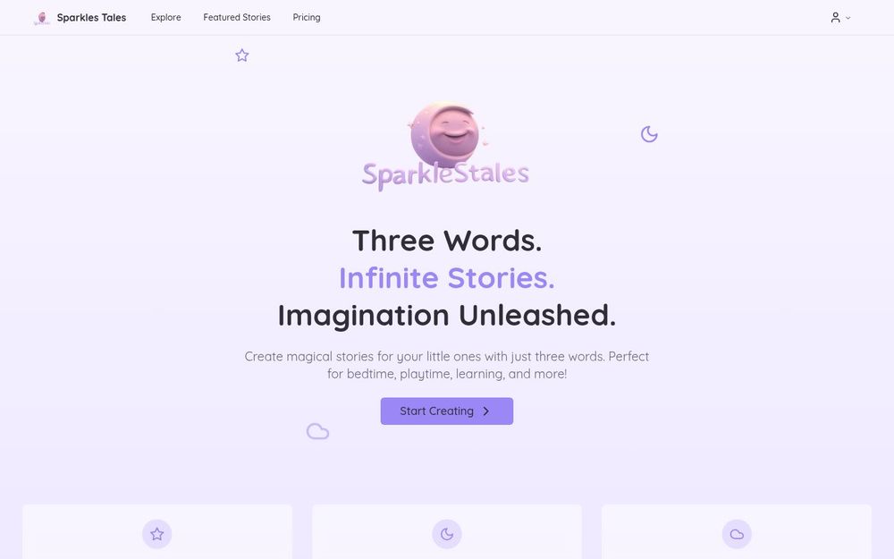 SparklesTales 是一个以“只需三个词,生成无限故事”为核心理念的儿童故事生成平台。用户通过在网页上输入三个关键词,平台利用 AI 算法即时生成短篇故事,支持睡前、学习、游戏等多种场景。界面简洁,操作门槛低,家长和教育者可以快速得到个性化、适龄的故事内容,并将喜欢的作品保存或分享到社区,与其他家庭交换灵感。