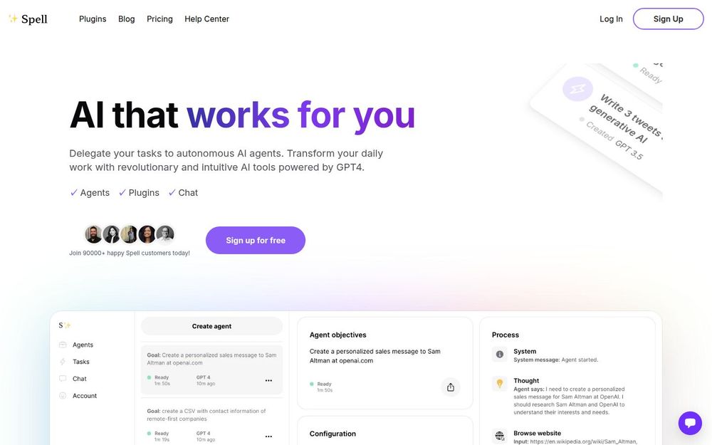 Spell 是一款以“让 AI 为你工作”为目标的生产力平台,核心在于通过 自主代理(autonomous agents) 自动执行任务,并支持 GPT-4 与 GPT-3.5 模型。平台面向个人与团队,提供模板库、插件扩展、网页访问权限与提示变量等功能,用户可以快速搭建、运行并行任务,从而显著提升内容创作、数据分析与自动化工作流的效率。