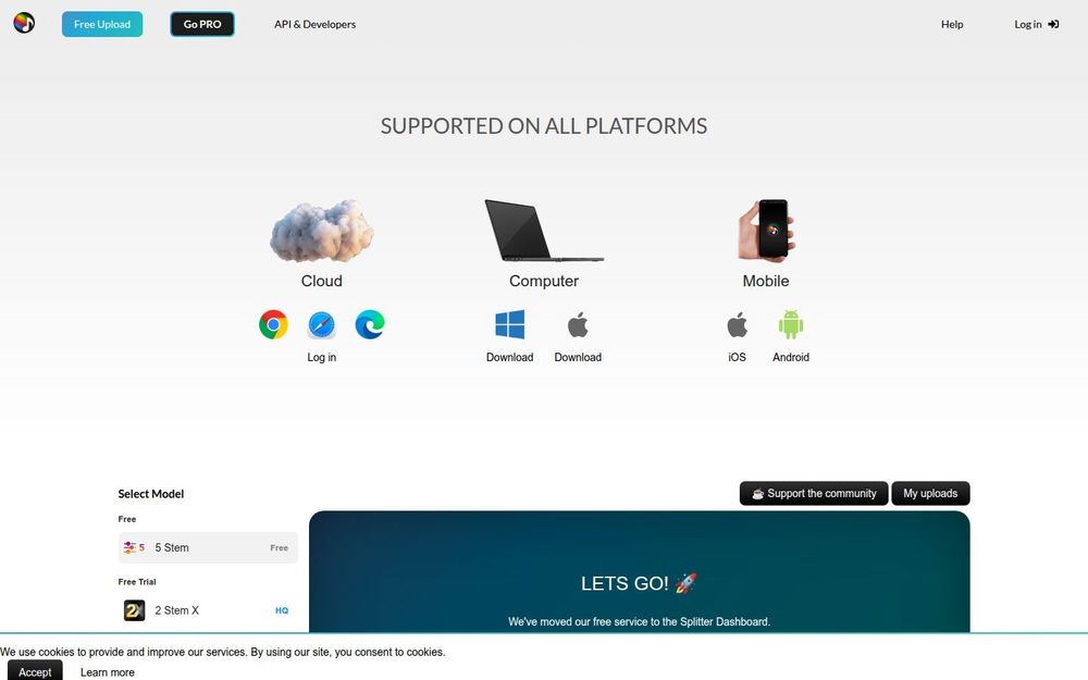 高质量两轨分离(2 Stem X / Splitter PRO): 提供近乎完美的 2 Stem(人声/伴奏)分离,并有针对专业用户优化的 PRO 服务。