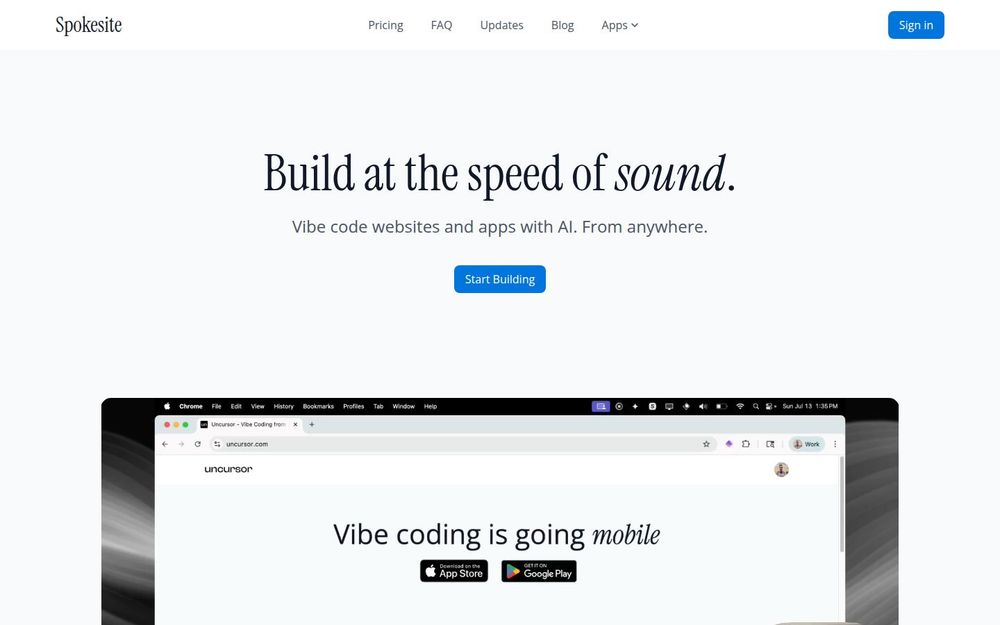 推荐使用 Spokesite 的主要原因是它将 自然语言交互 与 可导出的生产级代码 相结合,既降低了上手门槛,又保留了对源码与部署的控制权,适合快速验证想法与进行迭代开发。