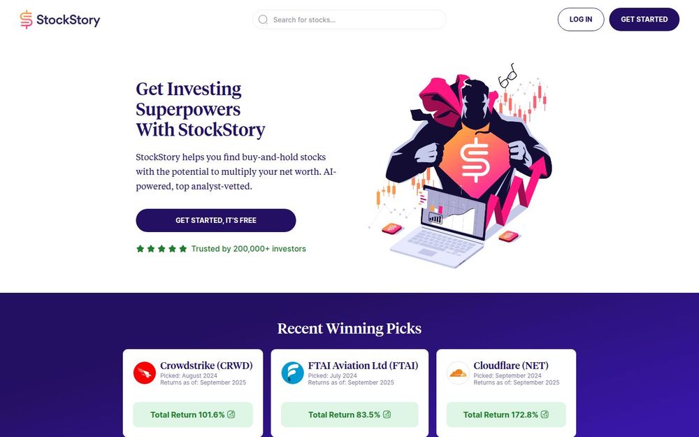 StockStory 是面向个人投资者的 AI 驱动股票研究平台,目标是把机构级别的研究能力下放到普通投资者手中。平台将专有数据集、先进的机器学习模型与资深分析师的人工复核结合,提供可操作的投资建议与及时的市场解读。StockStory 宣称其 High Quality 投资组合自 2020 年以来回报优异(示例数据:+244%),并拥有 200,000+ 用户信任与使用。