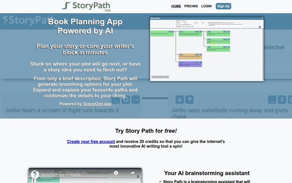 Story Path 是一款面向作者、编剧和创意写作者的 AI 故事规划应用,目标是用自动化的情节生成与可视化工具,帮助用户在数分钟内构建并探索多条情节路径。通过输入角色、体裁或简短描述,Story Path 会生成分支选项,让你可以快速试验“下一步会发生什么”的多种可能性,从而有效缓解写作阻塞(Writer's Block)。此外,Story Path 与 SceneOne.app 联动,能把规划和实际写作串联起来,形成从构思到落笔的完整流程。
