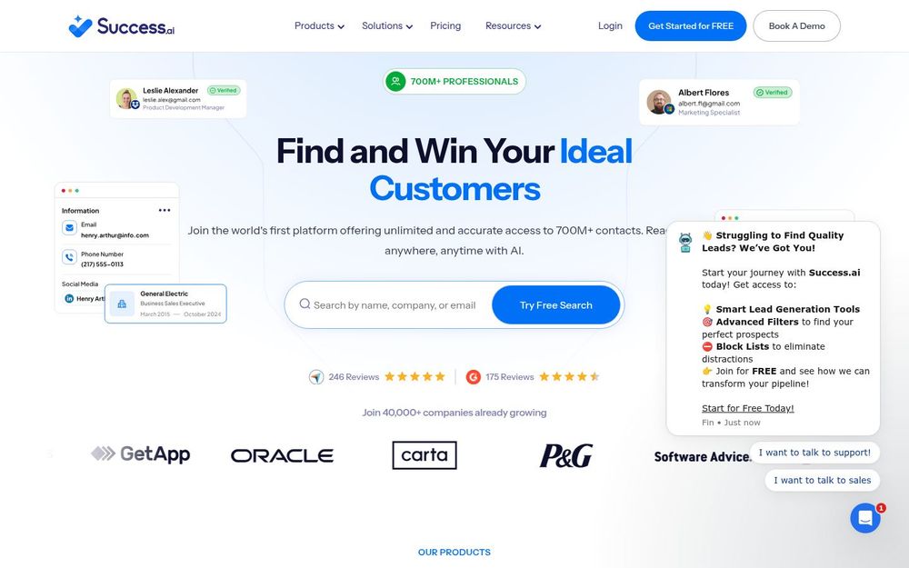Success.ai 是一款面向 B2B 销售、市场与代理机构的增长平台,核心主张是通过 AI 与海量数据帮助用户“发现并赢得理想客户”。其核心资产为一个宣称超过 700M+ 验证联系人 的数据库,结合智能筛选、意向信号与发送基础设施,旨在把线索获取、核验与外呼闭环化,降低获取成本并提升转化效率。平台提供免费试用、Chrome 扩展以及企业级白标与 API 集成,覆盖小团队到大企业的多种使用场景。