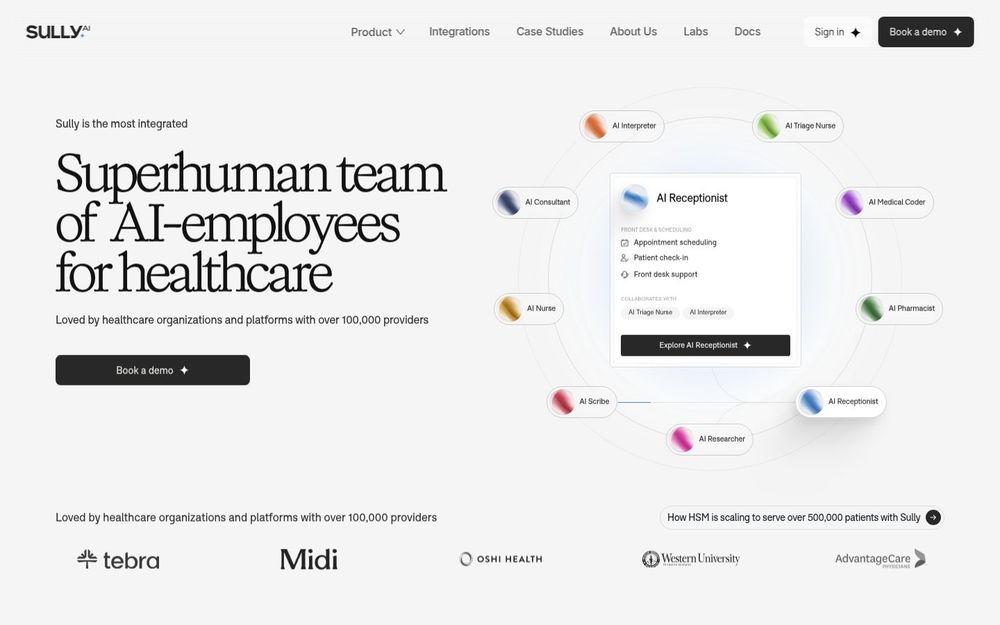 Sully 是为医疗机构量身打造的多智能体 AI 平台,旨在用一套可自治的 AI 团队覆盖患者就诊全过程的临床与行政环节。平台提供从前台接待到病历速记与医学编码等多种角色型智能体,支持语音、电话、短信与 EHR 数据的多模态输入,并与 Epic、Cerner、Tebra 等主流电子病历系统无缝集成,满足企业级合规与安全需求。