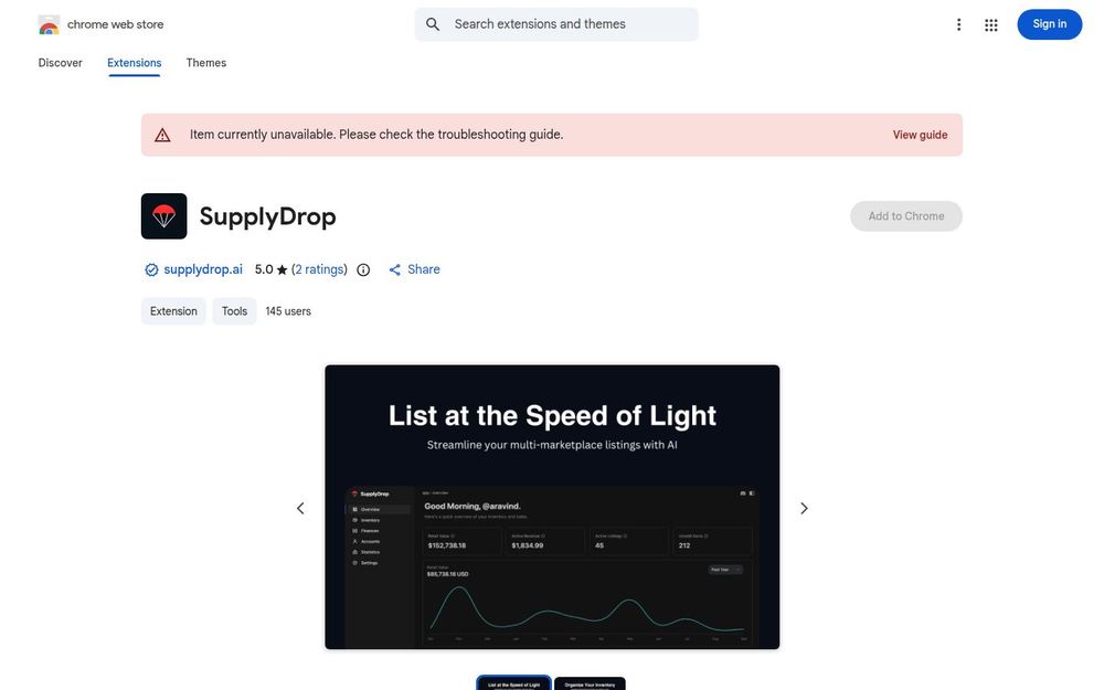 如果你希望减少人工操作、提升上架效率并在多个渠道同时曝光商品,SupplyDrop 提供了一个一体化的解决方案。它体积小、功能聚焦且易上手,适合想把日常上架流程自动化的个人或小团队使用。开发者提供网站与邮箱支持,并在扩展商店中以较高评分获得用户认可,是一个可快速试用的工具。