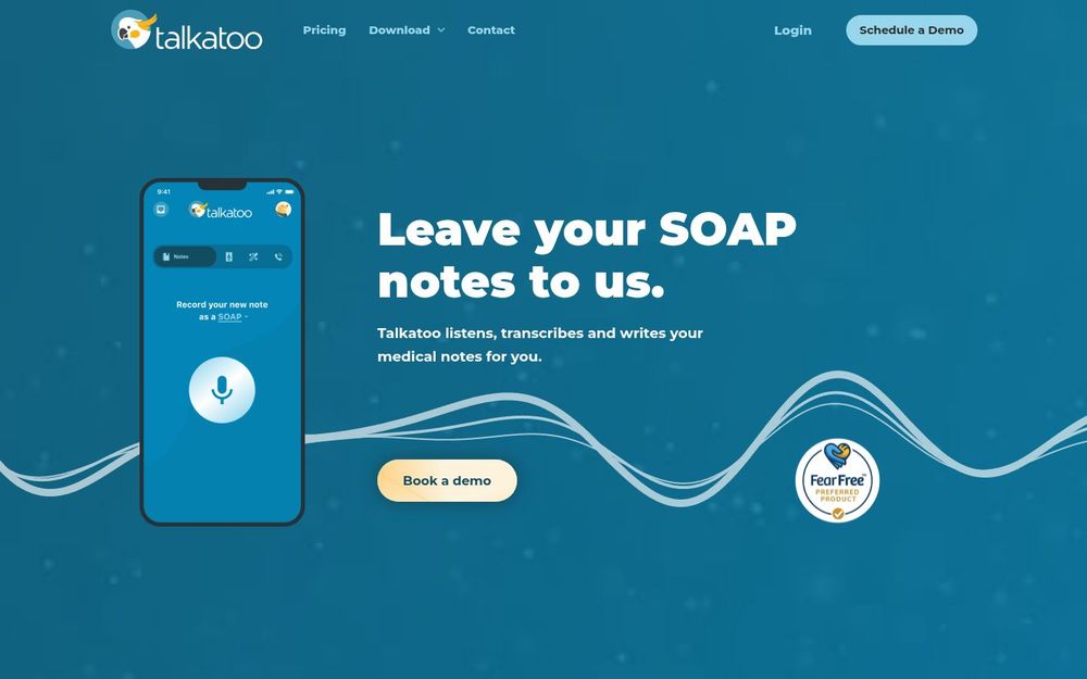 此外,Talkatoo 提供在线演示、可试用的下载选项与明确的定价起点(年付折算自 40 美元/月),适合希望快速评估 ROI 的诊所或兽医团队。若需快速上手,建议预约演示并测试桌面听写与 Auto-SOAP 功能在现有 PMS 中的兼容性。