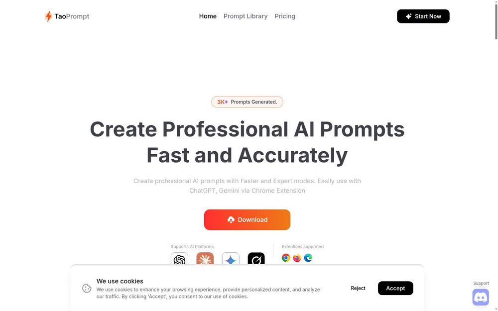 TaoPrompt 适合希望提升 AI 交互效率的用户,尤其是那些不熟悉提示工程但需要高质量输出的人群。通过模板化与自动优化,它显著减少了反复调试提示词的时间成本;通过浏览器扩展与多平台支持,用户可以在熟悉的工作流中直接使用生成结果;通过分层付费与配额管理,既方便新手入门也满足高级用户的扩展需求。