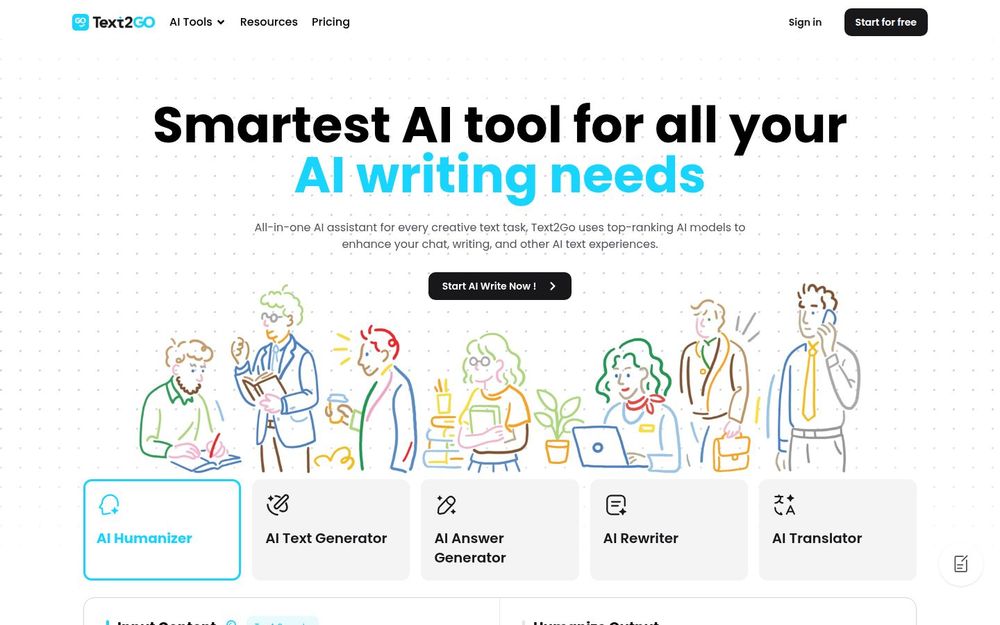 Text2Go 的优势在于其“全能化”和“易用性”。平台把常见的写作任务模块化,用户无需切换多种工具即可完成从生成到润色再到翻译的完整流程。尤其值得一提的是其 AI Humanizer 功能,能显著提升 AI 文本的自然度与个性化表达,降低被检测为机械产出的风险。此外,Text2Go 提供多种模板与场景化应用(如邮件、故事、专业信件),帮助用户在不同场景中快速上手并产出高质量内容。