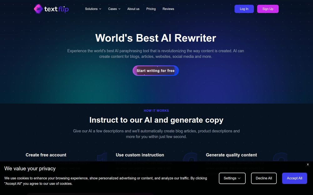 TextFlip 适合需要快速批量重写与内容再利用的个人创作者、营销人员与小型团队。若你看重改写效率、可控的输出风格与一组便捷的写作辅助工具,TextFlip 提供了丰富的功能组合与灵活的付费选择,能显著缩短文案产出时间并提高创作灵感。