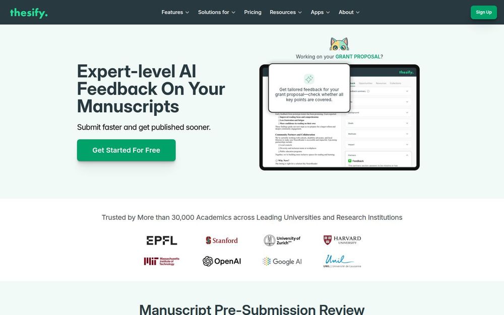 Thesify 适合希望提升学术写作质量且重视学术规范与数据隐私的研究者、研究生和教师。其结合学术化评价标准与交互式建议的方式,既能帮助用户改进当前稿件,也能在反复使用中提升写作技能与学术表达能力。对于希望在投稿前获得结构化、可执行反馈并快速提升稿件可发表性的用户,Thesify 是一个实用且值得尝试的工具。