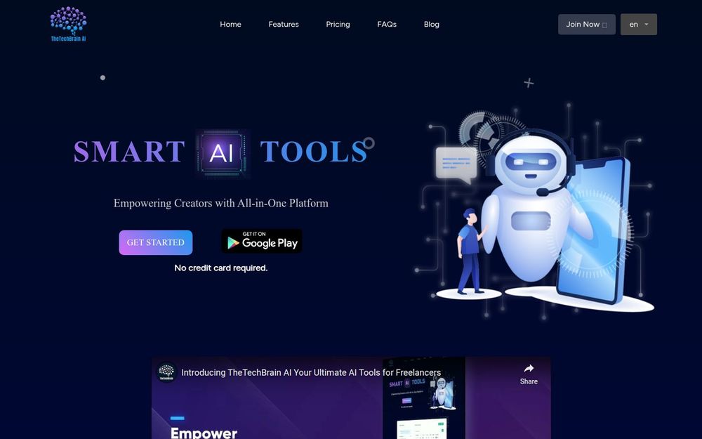 TheTechBrain 是一款面向内容创作者、营销人员与自由职业者的全能 AI 平台。它将 预设内容模板、AI 图像生成、文本转语音(TTS)、语音转文本(STT) 与 AI 聊天助手 等功能整合在同一产品中,旨在加速创作流程并降低使用门槛。网站提供免费试用与多档付费套餐,支持网页与移动端访问,适合需要快速产出高质量文本和多媒体素材的用户。