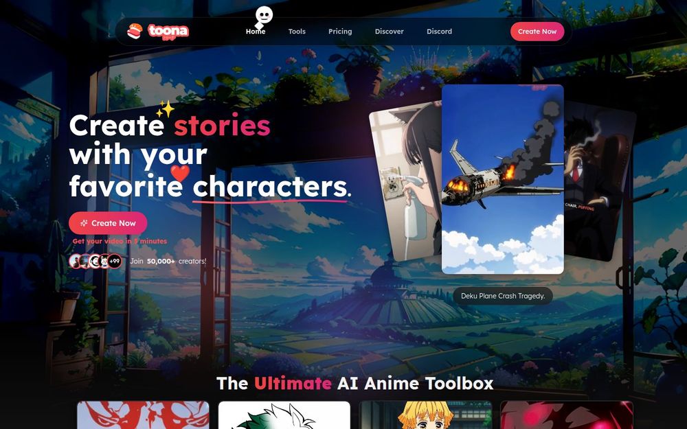 Toona 是一款面向二次元与动漫创作者的AI 动画与图像工具箱,旨在将静态插画、漫画与角色设定快速转化为可发布的视频或动态画面。平台聚焦让创作者在几分钟内产出高质量、风格统一的内容,支持从单张图片生成短视频、漫画上色与画面增强等多种功能,并通过网页版即时体验与社区支持(如 Discord)来降低创作门槛。