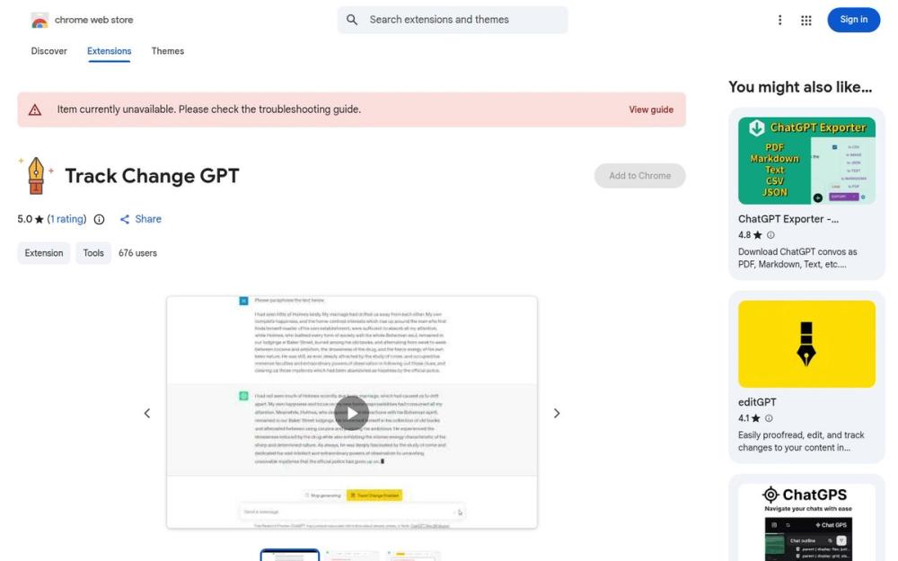 - 在 Chrome 网上应用商店查找“Track Change GPT”并添加到 Chrome;