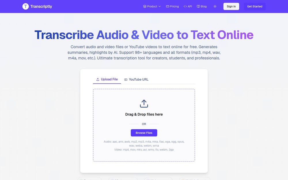 Transcriptly 适合不同用户群体:学生与研究人员可将长时讲座与访谈快速转成笔记与可检索文本;内容创作者可将视频转为字幕、博文和社交媒体文案;记者可以高效转录采访并准确提取引言;企业可用于会议记录、网络研讨会归档与竞争情报分析。