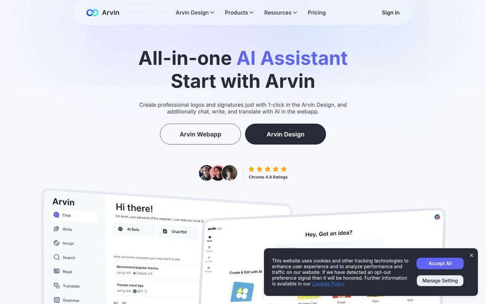 Arvin 将聊天式 AI 与实用设计工具相结合,既能在文本层面提供强大的写作、翻译与摘要能力,又能在视觉层面快速产出品牌与营销素材。其便捷的浏览器扩展、丰富的模板库和多模型支持,使其成为需要频繁处理文字与视觉内容用户的高效助手。对于希望把 AI 深度整合到日常办公与创作流程中的用户,Arvin 提供了功能全面且上手快速的解决方案。