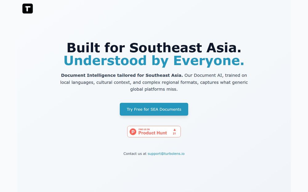 DocumentLens 是由 TurboLens 推出的文档智能套件,专注为东南亚(SEA)市场提供定制化的 Document AI 解决方案。与通用OCR或全球性平台不同,DocumentLens 在语言、文化语境与区域文档格式上进行了深度训练,能够处理越南语、塔加洛语、马来语、印地语等多种本地语言,并理解区域性的命名习惯与业务文档结构,从而在本地化场景中提供更高的识别率与语义准确性。