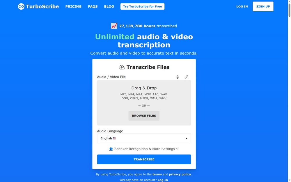 - 快速转录: 利用 GPU 加速技术,TurboScribe 能在几秒钟内完成转录,极大提高工作效率。