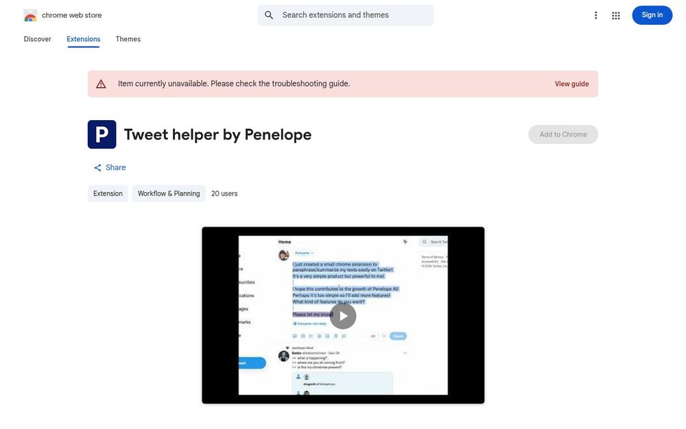 Tweet helper by Penelope 是一款为推文写作设计的 Chrome 扩展,旨在利用人工智能提升推文表达的质量与效率。它定位为写作辅助工具,侧重将用户已有的句子进行改写或将长段落进行摘要,从而更好地契合 Twitter 的字数与传播需求。扩展体积小、安装便捷,开发者信息和隐私声明公开,适合希望快速优化推文措辞的个人用户与社交媒体运营者。