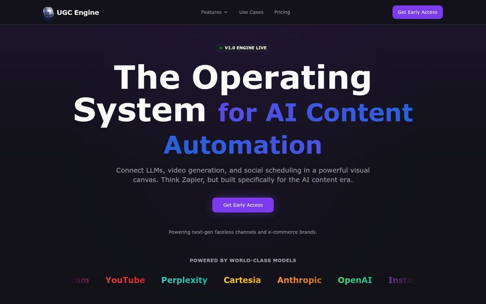 UGC Engine 将创作、自动化与分发合而为一,强调模型多样性、并行执行与品牌级智能代理,能够显著降低订阅成本并加速从创意到发布的流程。对于希望规模化生产短视频内容并保持品牌一致性的团队,是一套高效且成本友好的解决方案。