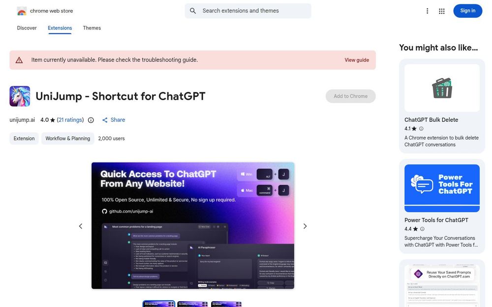 总体而言,UniJump 是一款定位明确、上手快速的 ChatGPT 浏览器快捷工具,适合需要即时对话辅助和文本改写功能的浏览器用户。
