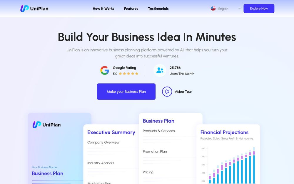 UniPlan 是一款面向创业者和小型企业的 AI 驱动商业计划书生成平台,通过自动化与智能分析,将复杂的计划书制作流程简化为几个可操作步骤。平台主打速度与便捷:输入业务信息后,10 到 15 分钟内即可获得可下载的 PDF 与 Word 格式商业计划书,包含执行摘要、行业分析、营销策略、产品与服务、定价、资金需求与财务预测等关键模块。