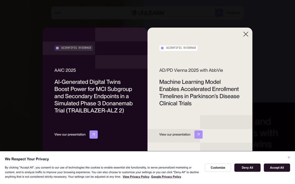 Unlearn 是一家以AI 生成的数字孪生为核心的临床试验优化平台。平台通过在历史临床数据上训练的疾病特异性机器学习模型,为每位试验受试者生成可预测的个体化病程轨迹,从而在试验设计、随机对照试验(RCT)运行和中期决策中提供定量化支持。Unlearn 的目标是帮助制药和生物技术公司节省资源、缩短开发周期并提高试验成功率,同时保持科学严谨与监管合规。