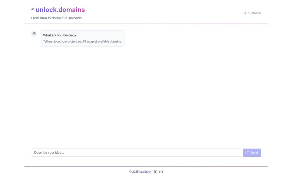 Unlock 是一款以用户项目描述为入口的域名生成与发现工具。用户通过回答诸如“你在构建什么?”之类的简短问题,Unlock 会基于输入生成一组具有品牌感、可注册性与语义相关性的域名建议。它适合早期创业者、产品负责人、设计师与任何需要为产品或服务命名的人使用,旨在缩短从构思到域名确认的流程。