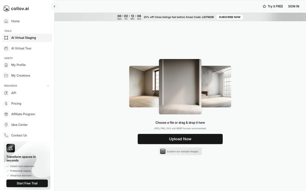 Collov AI 的虚拟布景工具适合房产经纪人、室内设计师与在线平台使用,能明显提升房源视觉效果并缩短上市时间。通过 低成本的虚拟陈设,用户无需实际购置或搬动家具即可呈现理想化的展示样貌。此外,平台提供的 免费试用 与促销活动(如折扣码)降低了试用门槛;而 API 与批量处理则满足规模化业务需求。