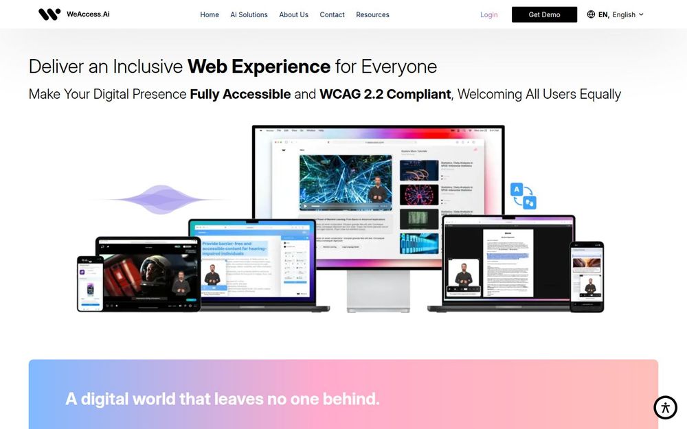 WeAccess.Ai 是一家聚焦“数字平等”的科技公司,使用 AI 驱动 的工具与服务,帮助企业将网站、移动端、媒体与印刷材料转变为对所有用户友好的无障碍内容。公司不仅注重技术层面的 WCAG 合规,更强调以人为本的包容设计与持续运营支持,旨在把“可访问性”从任务变成品牌价值的一部分。
