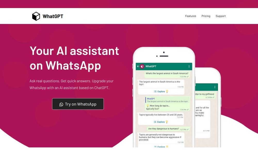 WhatGPT 是一个将 AI 助手无缝嵌入 WhatsApp 的服务,利用基于 ChatGPT 的模型在熟悉的消息环境中为用户提供即时问答、信息摘要与操作建议。它旨在以最少的输入获得简洁、实用的输出,适合需要快速响应、常用查询与简单研究的日常场景。
