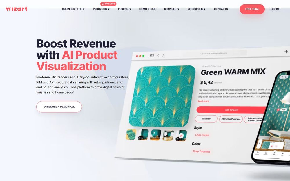Wizart 是专注于家居饰面、地板和墙纸等产品的 AI 可视化平台,旨在通过高度逼真的渲染与交互体验提升数字销售表现。平台将材质映射到真实房间照片或 3D 场景,支持在线试用与个性化配置,帮助消费者在购物前直观感受产品效果,从而提高转化率并减少退货。Wizart 同时为制造商、零售商、电商与开发者提供可扩展的集成方案和内容生态(包括 PIM、素材云与 API)。