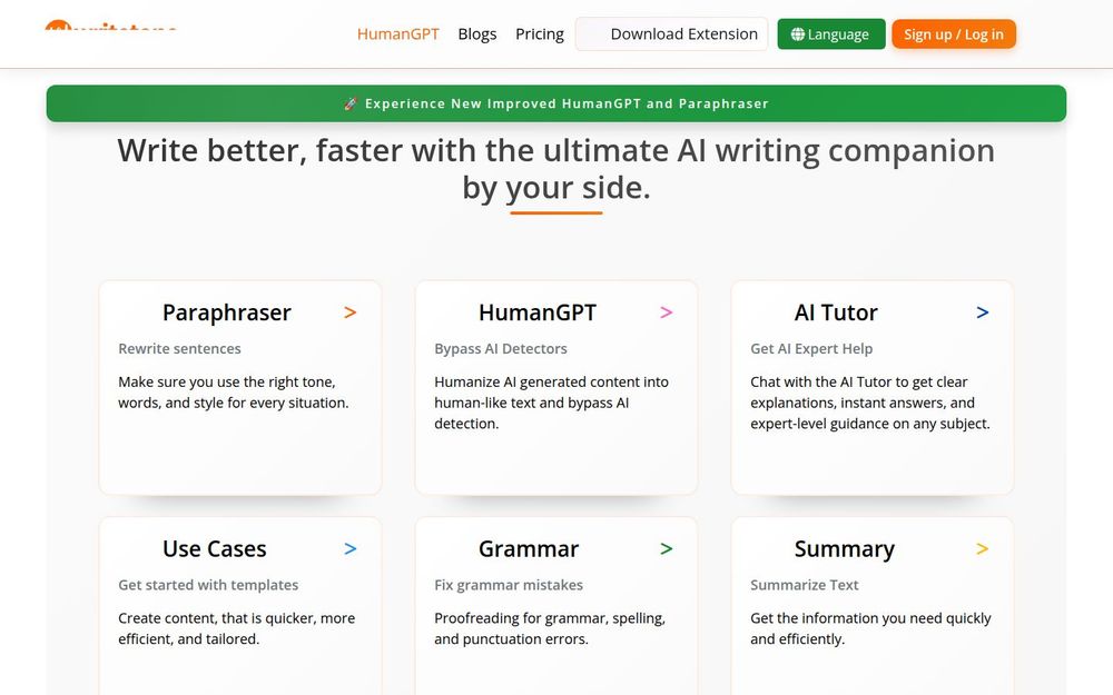 总之,Writetone 是一款面向多类写作者的综合 AI 写作平台,通过丰富的功能模块和易用的入口,帮助用户在不同场景下快速产出更自然、更专业的文本。