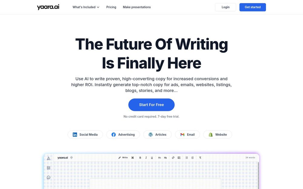 Yaara 是一款以人工智能驱动的写作助手,旨在帮助个人创作者、营销人员和企业团队更快、更高效地产出高质量内容。平台覆盖从短篇广告文案到长篇文章、从社交媒体素材到网站落地页的全流程写作需求,提供多种专用工具与模板,并支持多语言输出与上下文理解,帮助用户降低写作成本、提高转化率与产出频率。